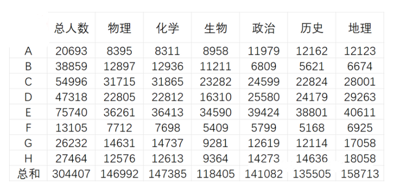 从数据上来说,地理依然是各位考生*喜欢选择的科目。但是各个地市片场比较大,比如说B地市的物化省考生人数明显多于其他地市,并且呈现出罕见的73开局面。人数越少的地市该现象越明显。