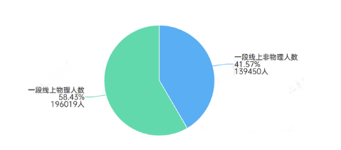 以山东高考的数据来说,一段线以上人数333469人,单选物理人数196019人,占比高达58.43%。根据同等比例换算,如再提升1.3%的百分点也就是过线人数会高达19.85万人。